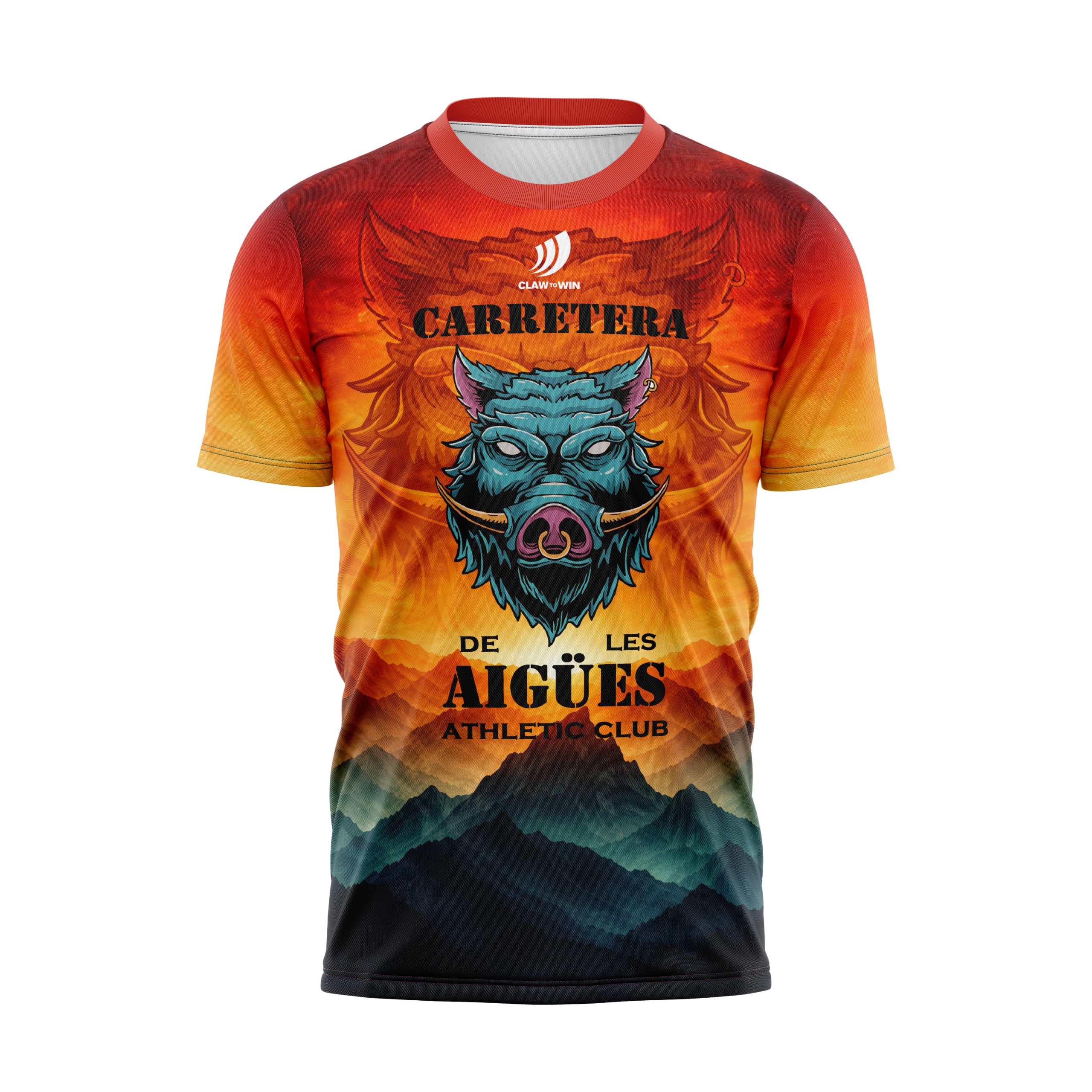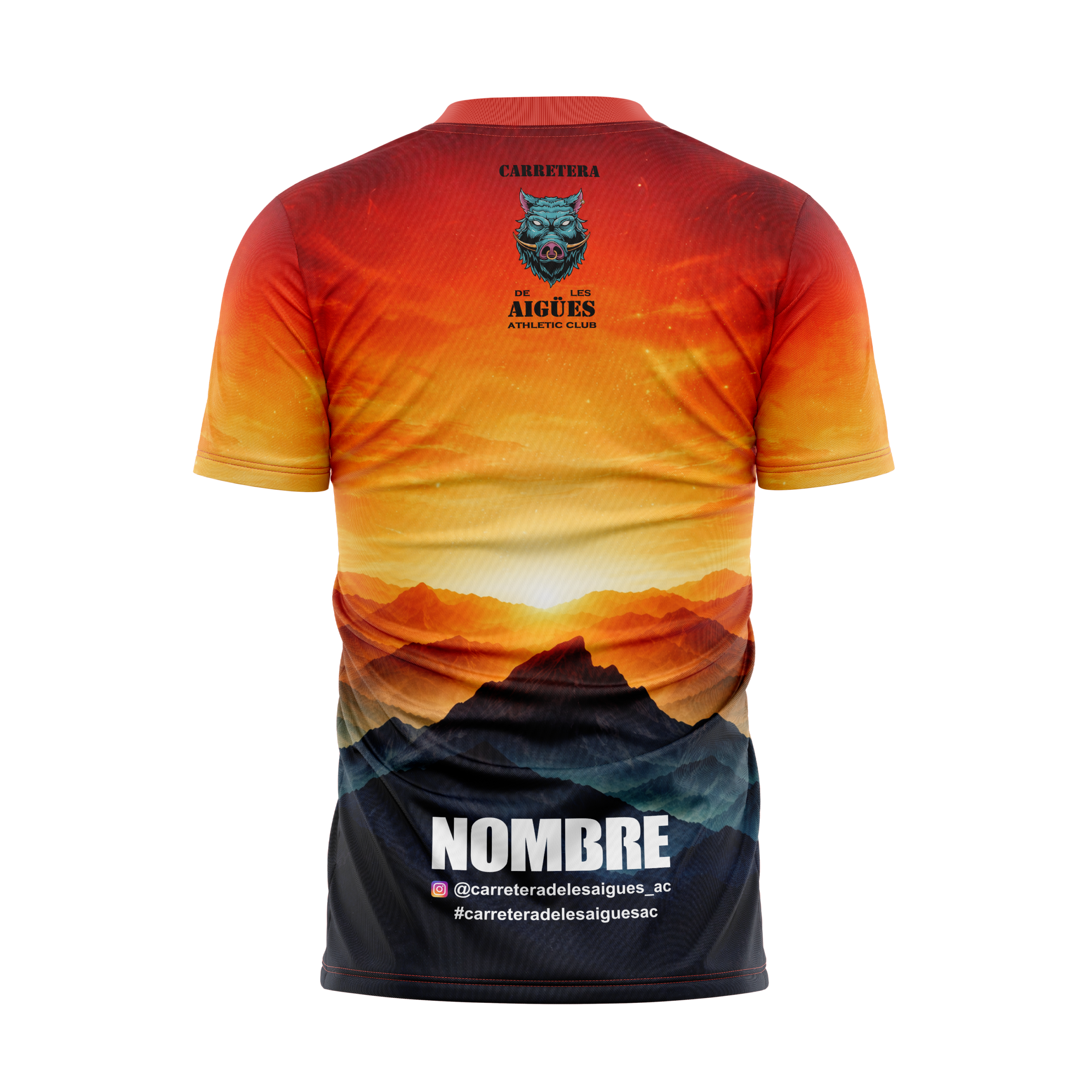 Camiseta técnica evento «CARRETERA DE AIGÜES» fabricada 100% poliester con microperforación adaptada, 150gr/m2 con nuestra tecnología creada para la correcta traspiración del cuerpo en el tejido. Realizada en España.